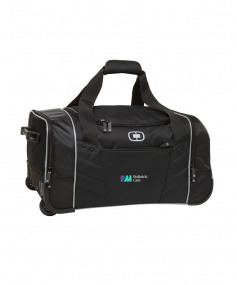 Skate effortlessly through the airport or train station with this durable wheeled duffel that's sized to fit your trip. Features locking retractable handle for optimum mobility, large center storage area for clothes, toiletries and other travel accessories and hidden front exterior zippered stash pocket, side exterior zippered pockets for extra storage and wrapped handle for comfortable carrying. Strong, durable grip handle on foot, soft grip handles on top for easy lifting. Complies with Prop 65. 22" H x 13" W x 12.5" H
